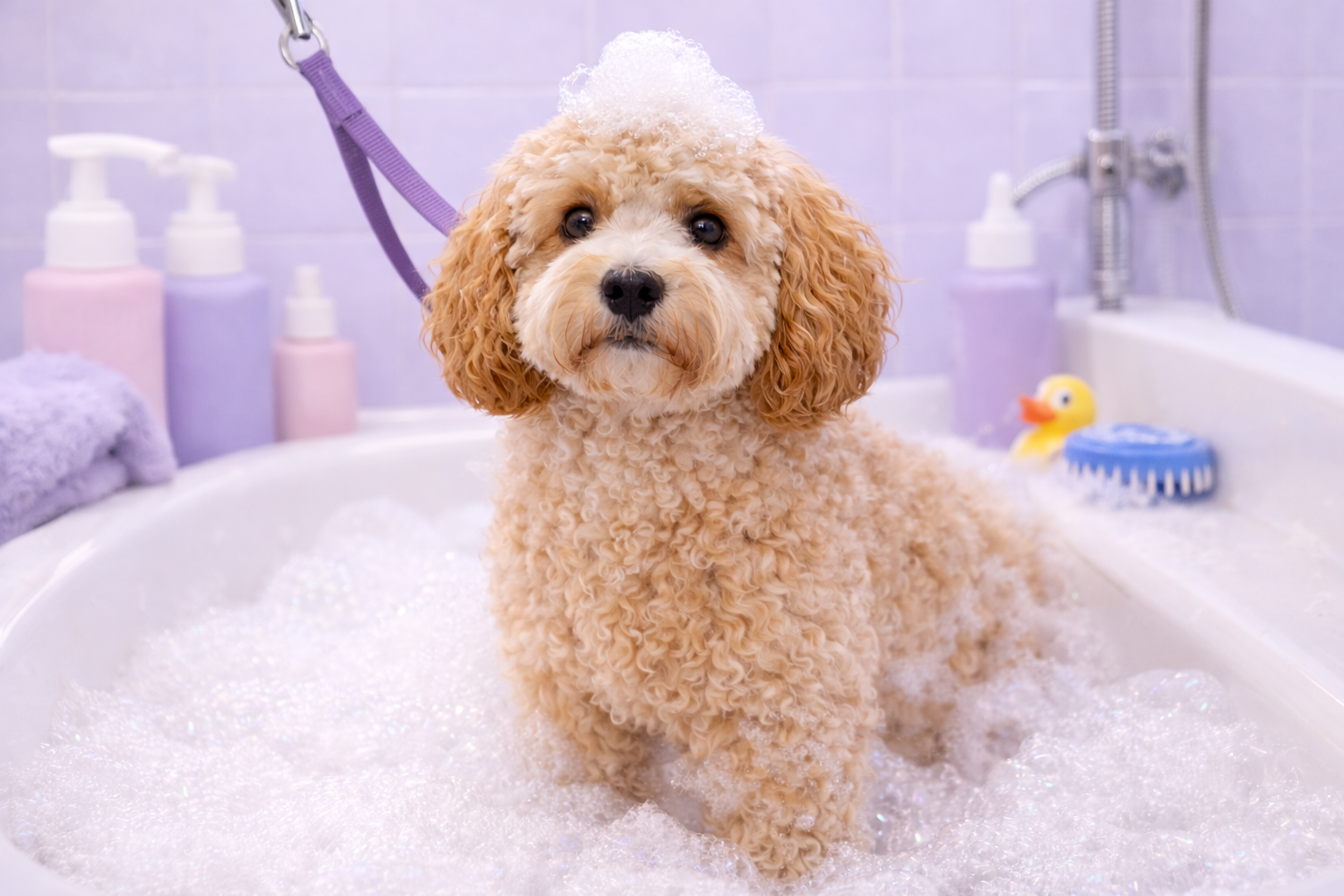 No — we bring all professional grooming equipment, including a portable bath, grooming table, dryer, and products. We simply require a small space in your home where we can set up comfortably.