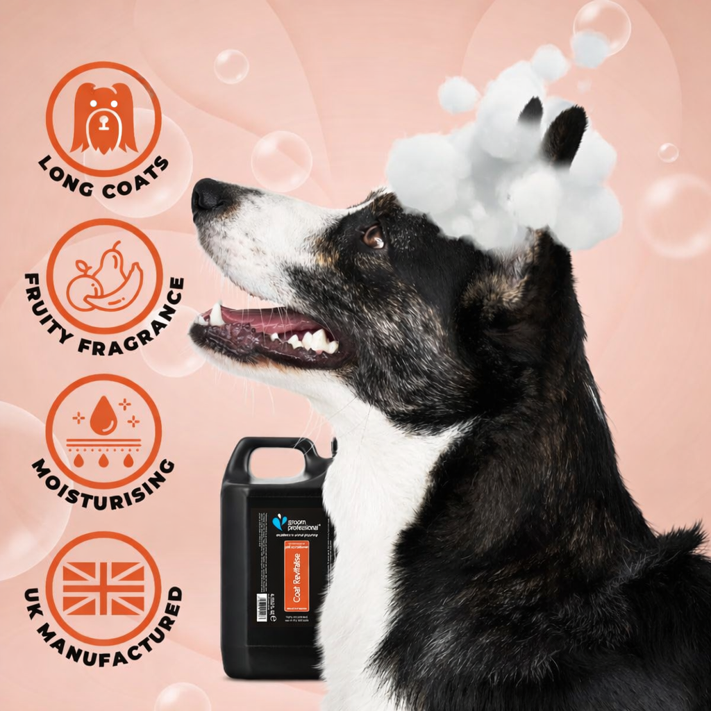 Perfect for double and long-coated breeds, this revitalising treatment helps restore moisture, shine, and overall coat health. It begins with a gentle cleansing wash followed by a nourishing coat treatment designed to hydrate and condition the fur, leaving it softer, shinier, and more manageable. The treatment helps revitalise dull coats while supporting a healthy, well-maintained finish.