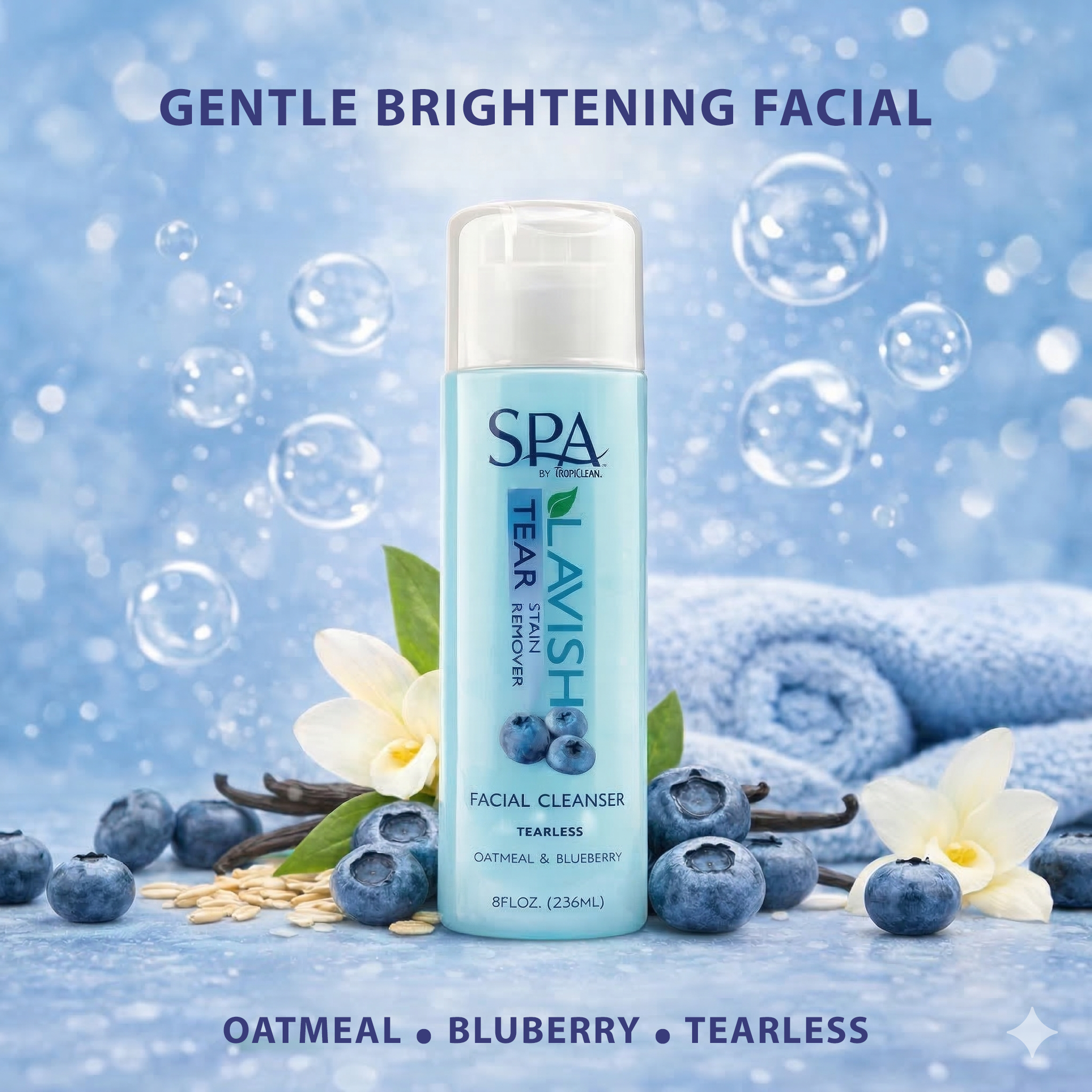 Our Blueberry Facial is specially designed for white and light-colored dogs or pups prone to tear stains. This gentle treatment includes a deep-cleansing blueberry facial to help remove buildup and brighten the face, a tear stain remover to reduce staining around the eyes, and a nourishing nose balm to moisturize and protect dry or cracked noses.
