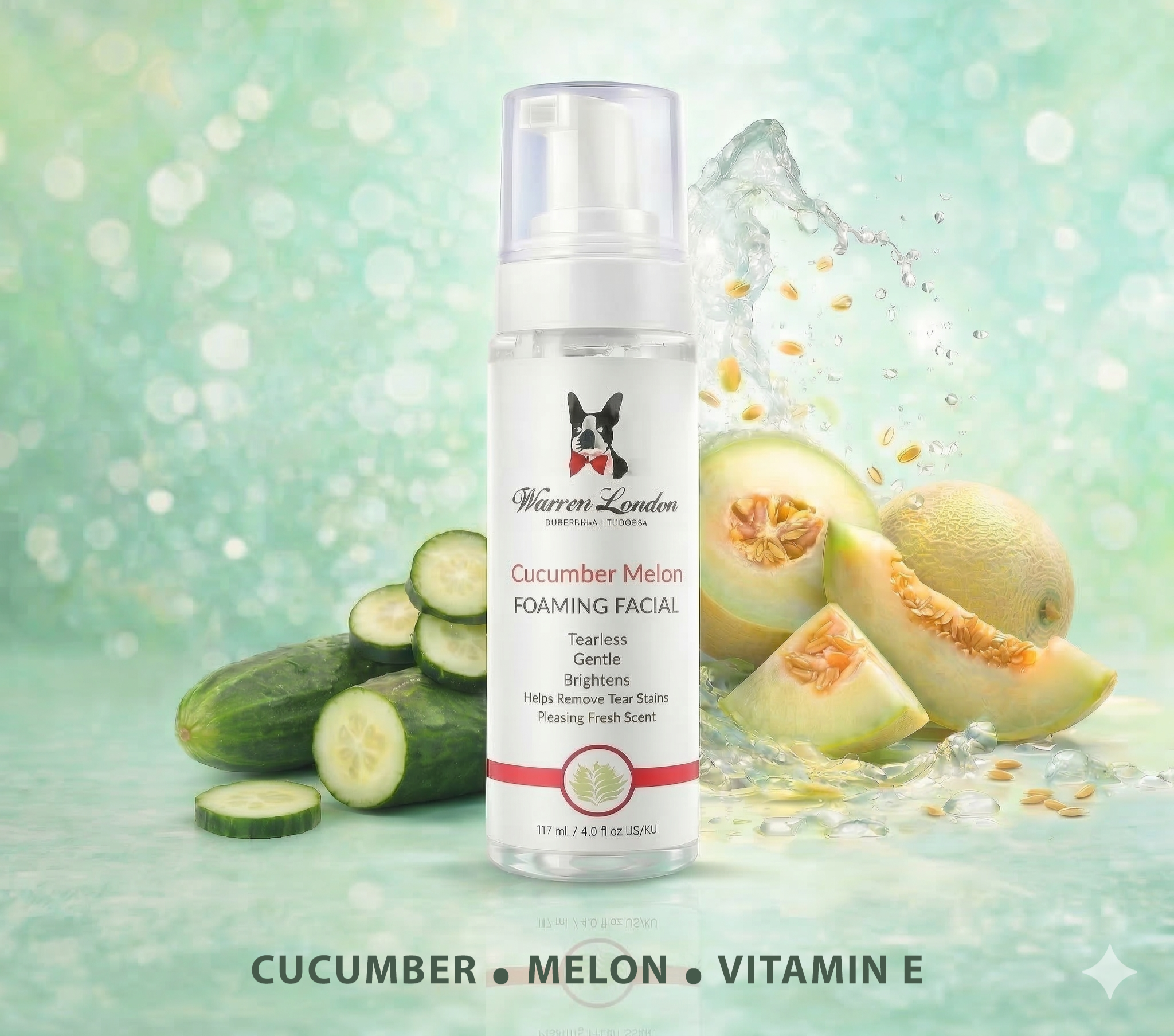 Our Cucumber & Melon Facial is a refreshing treatment suitable for all dogs. This gentle facial helps cleanse away dirt and buildup around the face and eyes while soothing and refreshing the skin. The light cucumber and melon formula leaves the face clean, soft, and fresh, and the treatment is finished with a nourishing nose balm to moisturise and protect dry noses.